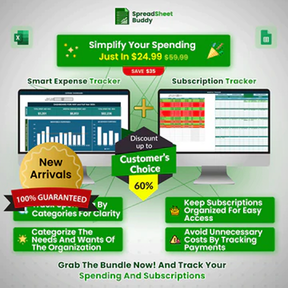 Free AI Habit Tracker and AI Subscription Tracker are included with any spreadsheet purchase start optimizing your finances right away!