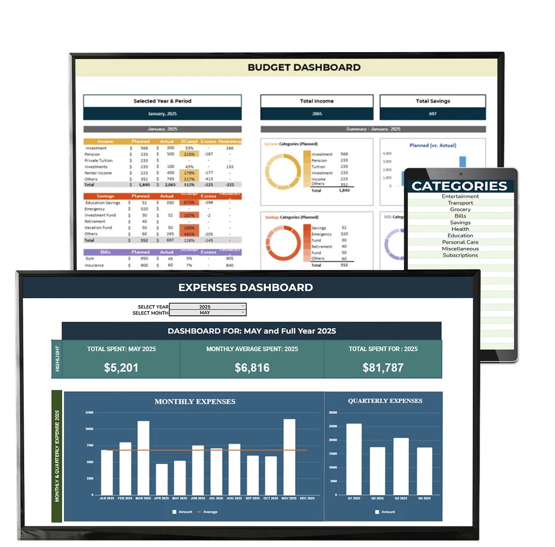 This bundle includes all you need to monitor your spending, keep tabs on your subscriptions, and develop sound financial practices. You can manage your income, keep an eye on your spending, and establish goals with ease due to simple templates and insightful data. It’s ideal for small enterprises, independent contractors, and people who wish to maintain organization and make better financial choices.